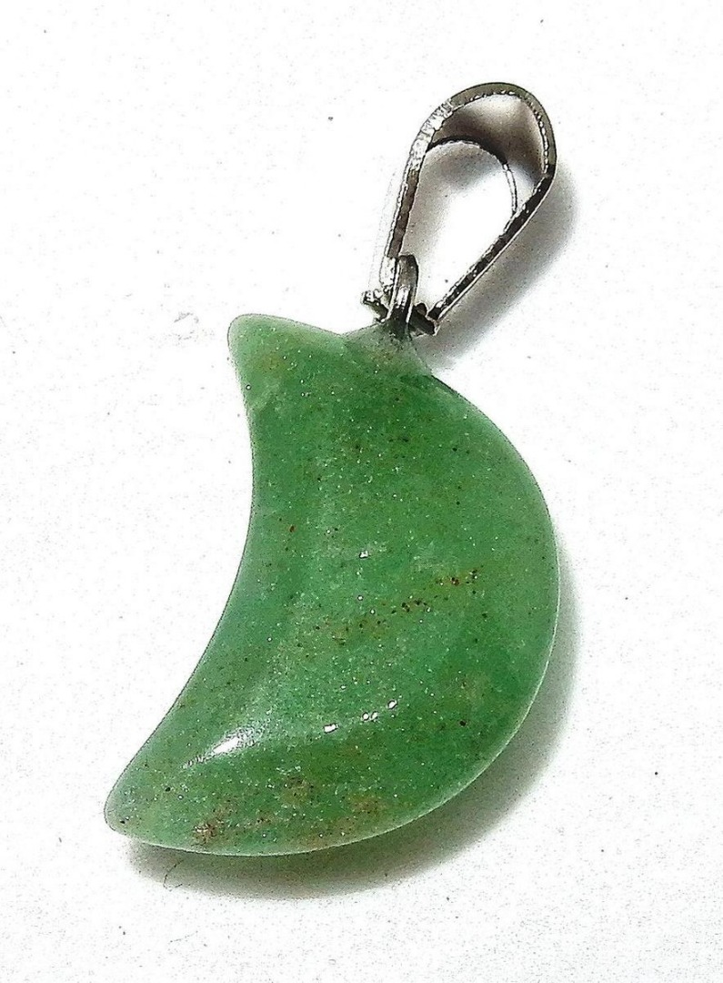 Verfijnd hangertje van een halve maan. Uitgevoerd in natuurlijke Aventurijn, compleet met een koordje om direct te kunnen dragen. Afmeting: 10 x 17 x 5 mm. Gewicht: 1,7 gram