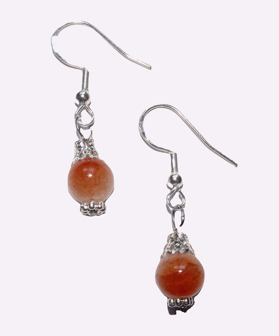 Zilveren Oorhangers Kristal Bal Oranjebruin