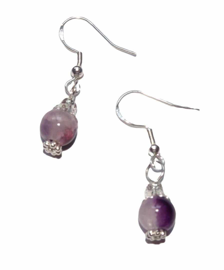 Zilveren Oorhangers Kristal Bal Paars