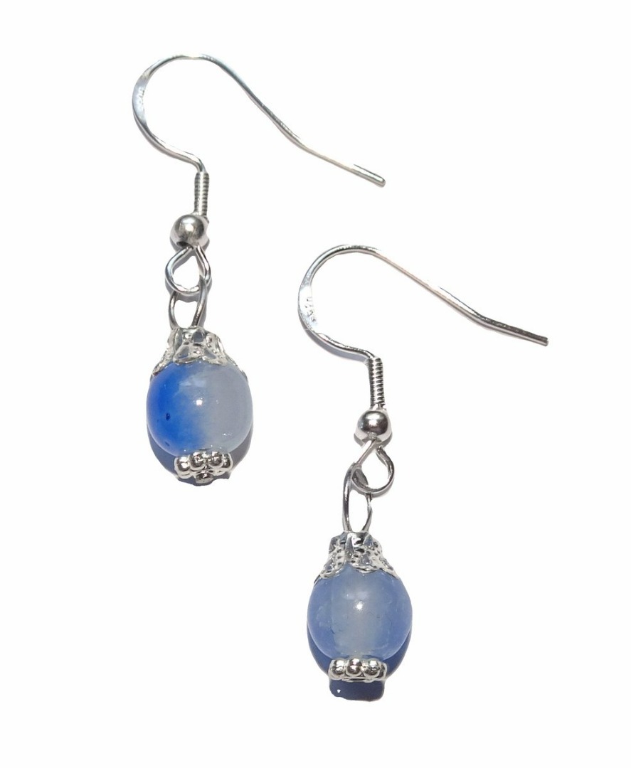 De oorhangers hebben een kristallen balletje met veranderende kleuren bij bewegen en zilveren oorhaakjes